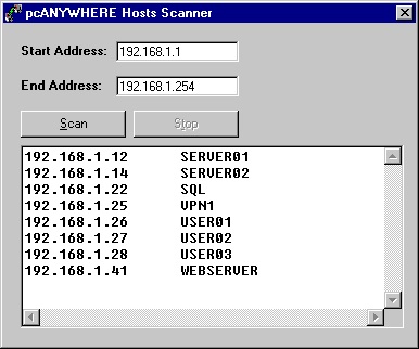 | download pcANYWHERE Hosts Scanner | |