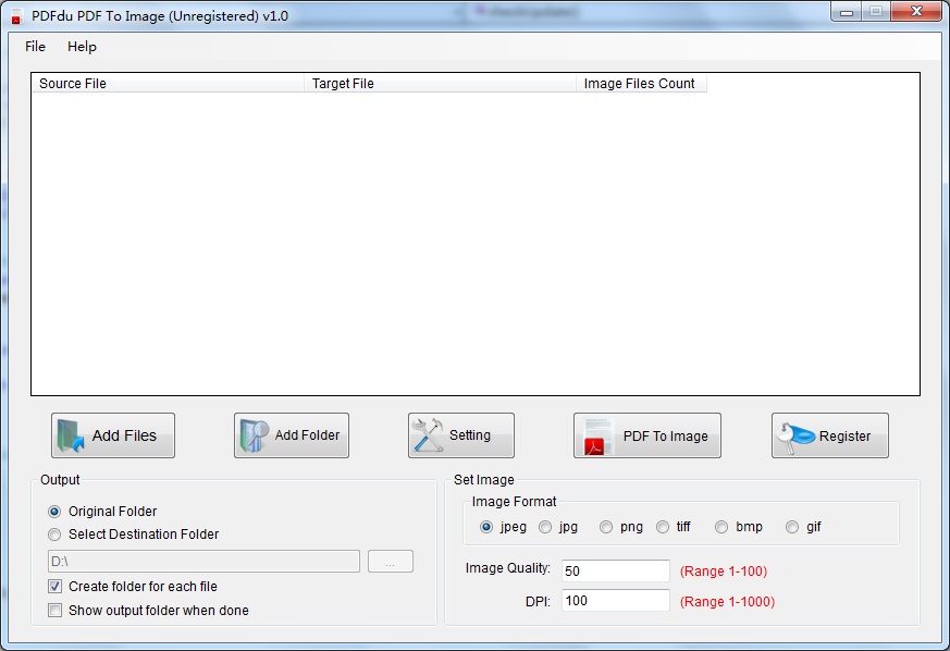 PDFdu PDF To Image helps you batch convert PDF files to image files.