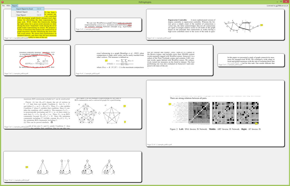 PdfHighlights is a simple program that is able to extract all notes and highlights from your selected number of PDF documents. Once extracted, they are saved in a summary report that takes you back to the specific document with the given specifications with one click.