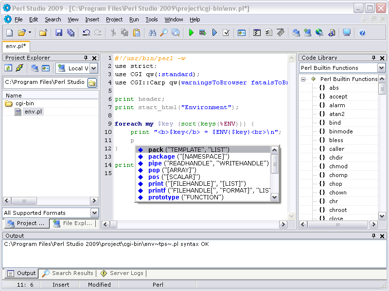 Perl Studio - is an advanced Perl editor with a focus on CGI programming, providing a sophisticated and affordable solution for developing, tuning and deploying Perl-based applications. With advanced features, your development processes will be easier.