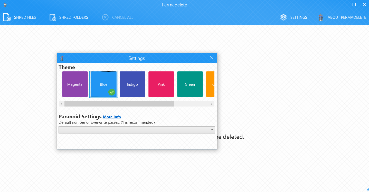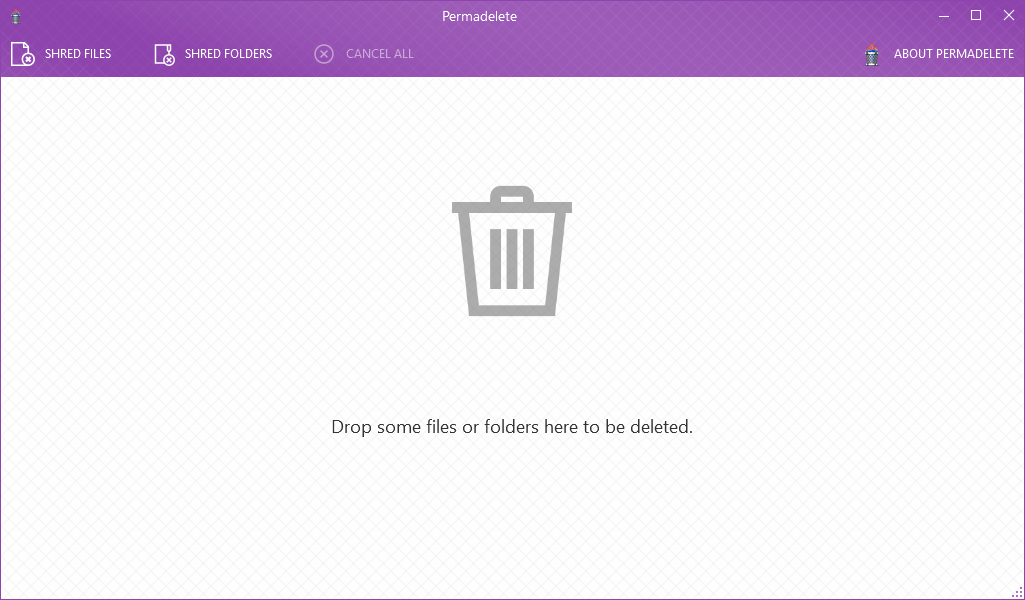 Permadelete irreversibly deletes selected files from the PC. It permanently deletes arbitrary files, either from the context menu or by dragging and dropping the file into the window.