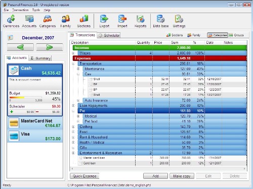The Personal Finances program is designed to keep track of all your expenses and income. You can easily track and compare all the financial movements in your household.