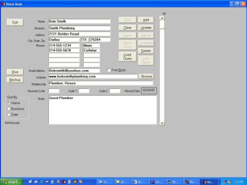 Phone is a handy electronic contact list. In the fields of this database you can enter: name, company, address, phone, email address, website, various notes, etc. The program allows easy search of contacts and clear display.