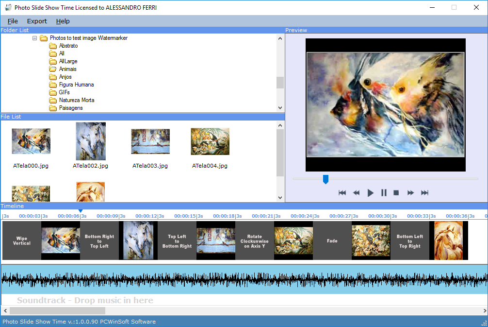 Photo Slide Show Time is a software for creating slideshows from digital photos. You can also add an audio soundtrack to your slideshow. Once the list of input images and photos is loaded, it is necessary to define how long it should take to display one slide, or a transition effect can also be applied. The finished project can be exported to various formats typical for video.