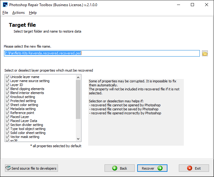 This program is used to repair corrupted Photoshop drawing projects. Photoshop Repair Toolbox restores corrupted *.PSD files.