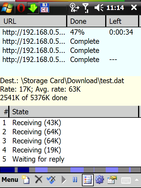 PocketDownloader software allows you to download large files directly from your Pocket PC. It includes features such as stop and resume downloads, queuing, multi-threaded downloads, measurement statistics, etc. HTTP and proxy authentication support, integration with Opera browser.
