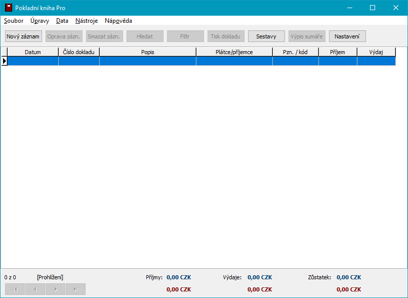 The program, or rather its help, does not contain a method of keeping a cash book, information of this kind must be found in book manuals or on the Internet. From a technical point of view, the program complies with current legislation, which is particularly relevant for printouts. The data entry itself is treated with control mechanisms so as to avoid, as far as possible, incorrect entries (most often incorrect filling in of fields or their omission).