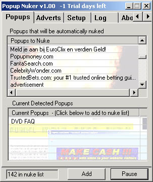 Popup Nuker is a tool used to easily block popups and ads. The program integrates into Microsoft Internet Explorer and runs automatically when the browser is opened. If you do not use this browser you can use Popup Nuker Configurator for any browser.