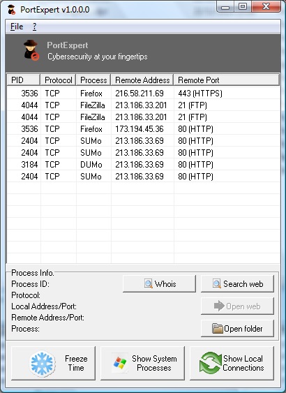 PortExpert is an application that shows a detailed view of your computer's security. It automatically monitors all applications connected to the Internet and then displays in a report all the information you may need to identify potential threats on your system.