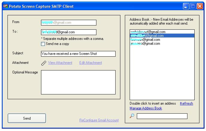 Potato Screen Capture is a free screen capture application that lets you quickly and easily capture any part of your computer screen. You can then send the captured image directly from the app to an email address of your choice.