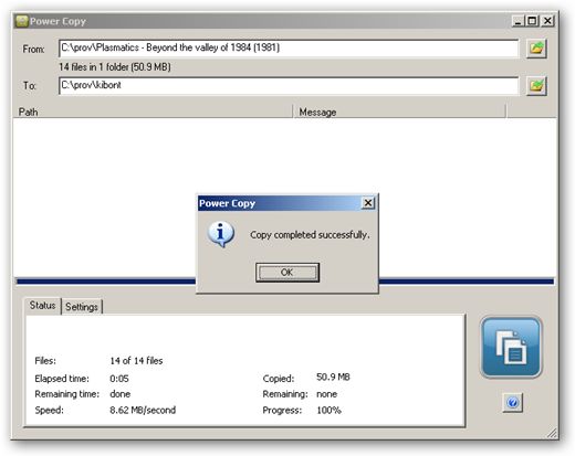 PowerCopy is a freeware tool that reliably copies files and folders. If it encounters a file error, it alerts you and continues copying. Corrupted files are automatically skipped and a warning is displayed on the screen. The program also has access to copy secure files and folders.
