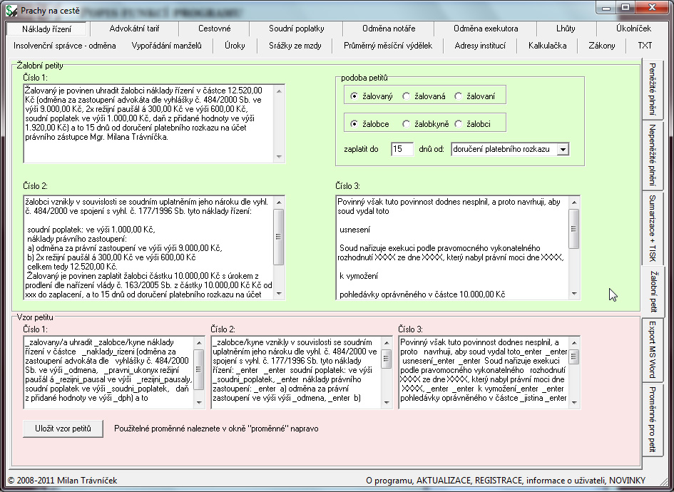 The program formulates the petition itself, or you can modify it according to your wishes. So, you only need to insert the petition into the document. There are now 3 templates for the petition.