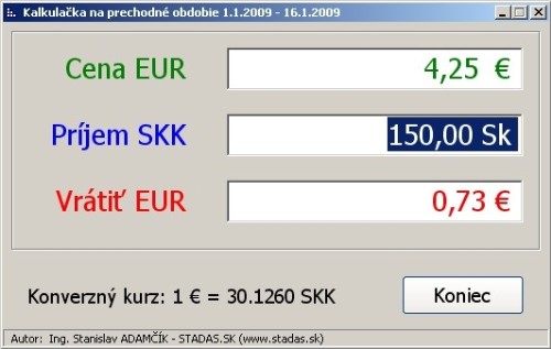 When someone pays you an amount in SKK, this program calculates how much you have to pay back to the customer in EUR.