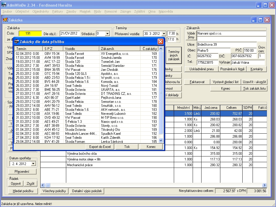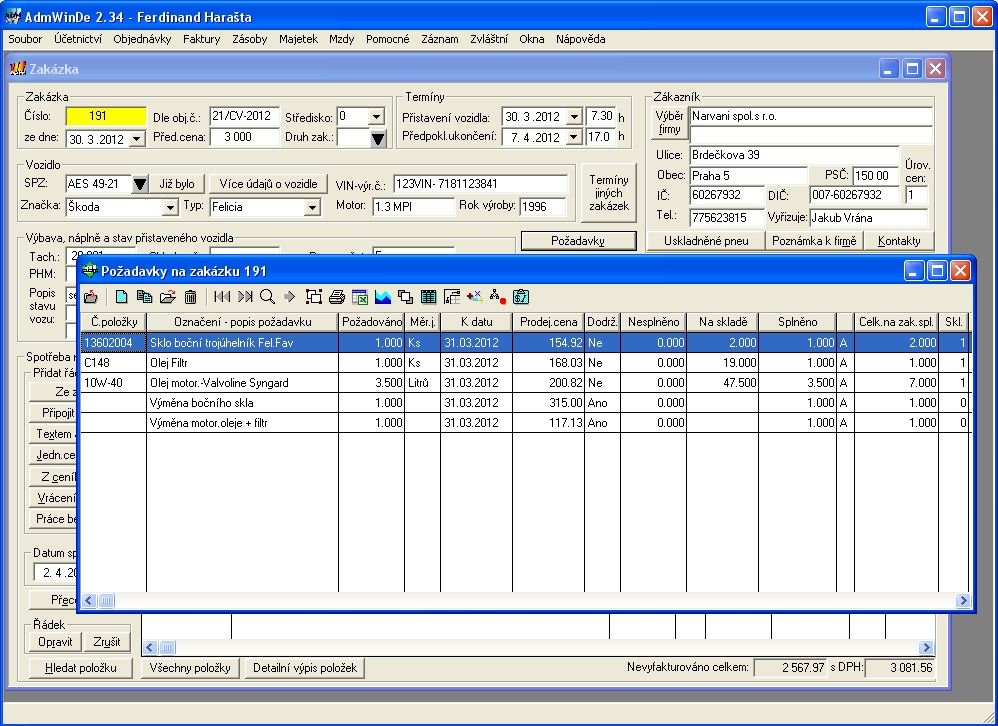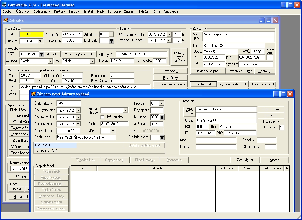 ![]() | Podnikatelský systém PROFIT 2025.04Car repair/maintenance contracts, warehouses, invoicing |