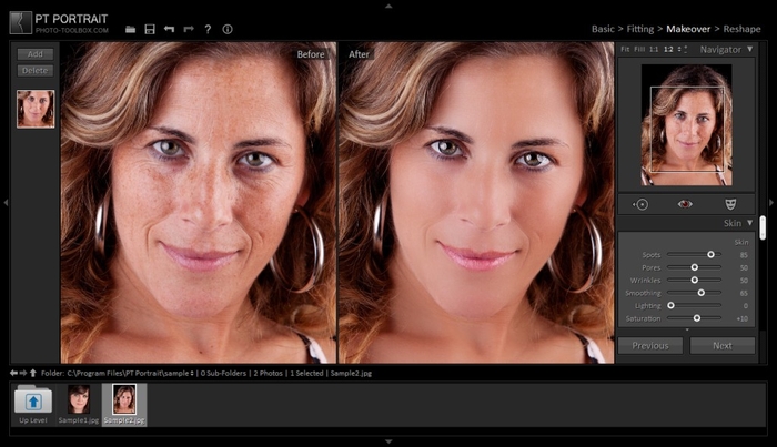 PT Portrait is a graphic tool designed for editing portrait photos. It removes and eliminates unwanted elements on the face and other areas of the image. A trio of basic sliders are available for working with colors. The next step of the process is to select specific points on the photo to be edited. You can also work with shadows, gloss, pores, smoothing tools to make the image perfect.