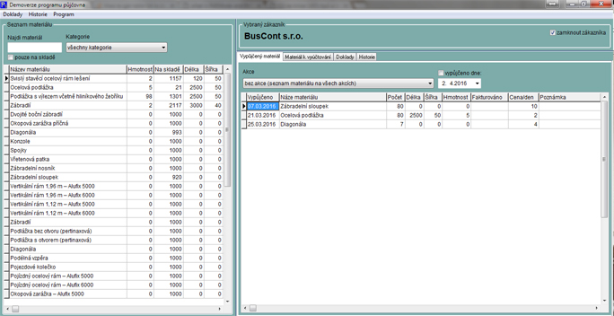 The Rental program is used to keep records of borrowed material and for its possible later or continuous invoicing. It is possible to rent single items or larger quantities of the same type.