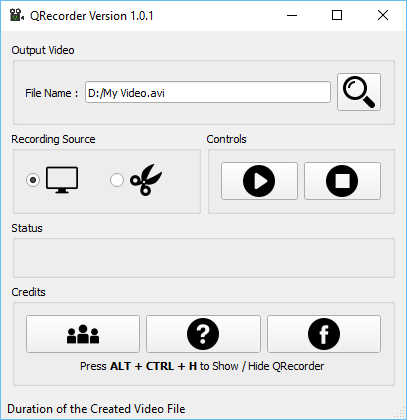 QRecorder is an intuitive application designed to record your screen and save the recording as a video file. It allows you to record the entire screen (full screen) or just a dedicated part. Saving the video file is of your choice.
