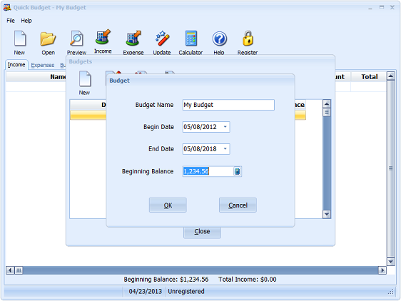 Quick Budget is a program that creates and prints budgets. This app shows you exactly how much money you will have in the future if you stick to a budget.