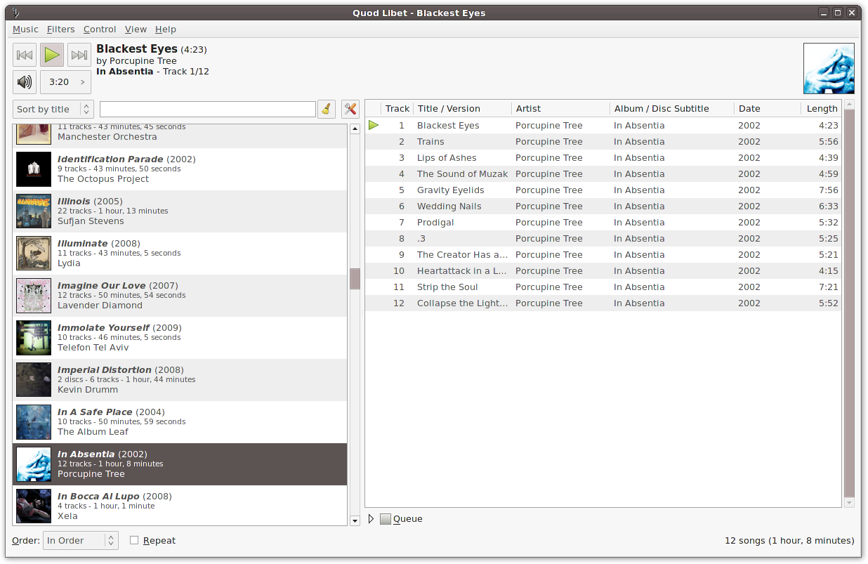 Quod Libet is an audio player written in "Python" that was designed with intuitive control of your music library. Supported formats: MP3, Ogg Vorbis, Speex, Opus, FLAC, Musepack, MOD, XM, IT, WavPack, MPEG-4 AAC, WMA, MIDI, Monkey Audio