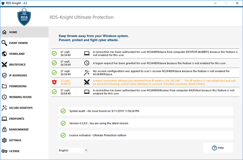 RDS-Knight is essential cybersecurity software that detects attacks on remote connections, protects servers and improves the security of your network.