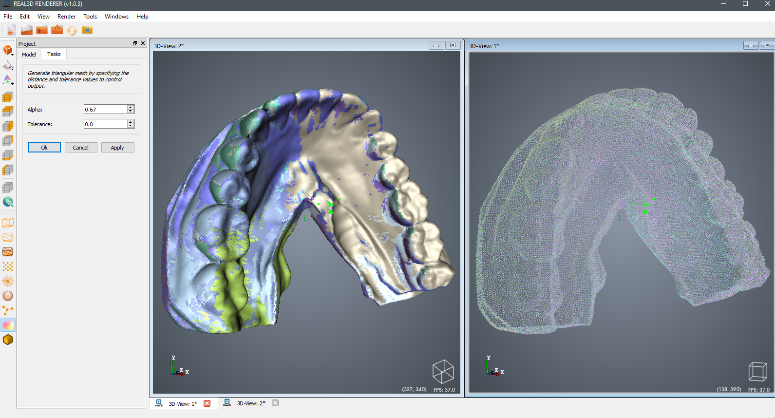 Real3d Renderer is an interesting program for editing an image into the form you want. It has the ability to import and export more than 60 well-known formats including PLY, STL, OBJ, OFF, 3DS, WRL, XYZ, AMC, BVH. It also offers smoothing, cleaning, filtering, decimation, reconstruction, registration, merging and hole filling etc. The easy and clear interface will surely make your work easier.