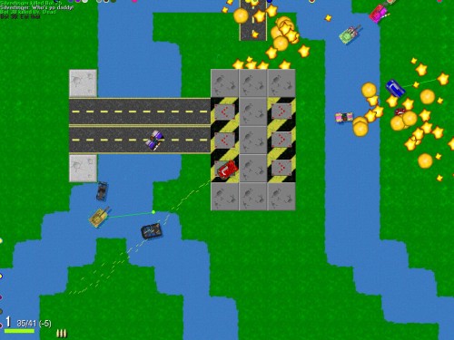 You have a choice of three vehicles (tank, hovercraft, Hummer off-road vehicle) and your goal is to destroy the enemy vehicle. To do this you will use 8 weapons with infinite ammo. You can play over the network, against the computer or in splitscreen mode.