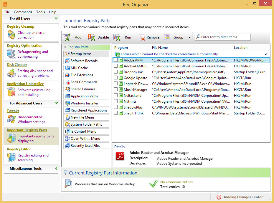 Here are some other benefits of using Reg Organizer: