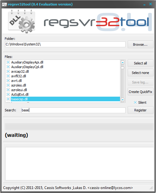 Regsvr32tool is a tool to register DLL and or OCX files in single or batch mode. It allows you to create associations for DLL or OCX files in the Windows registry.