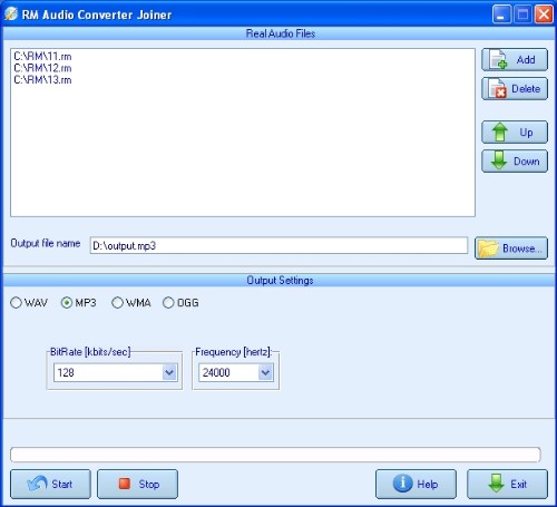 RM Audio Converter Joiner is a simple and fast tool for converting and joining various files of the following formats: RM, RA, RAM, RMVB, RMJ to WAV, MP3, OGG, WMA.