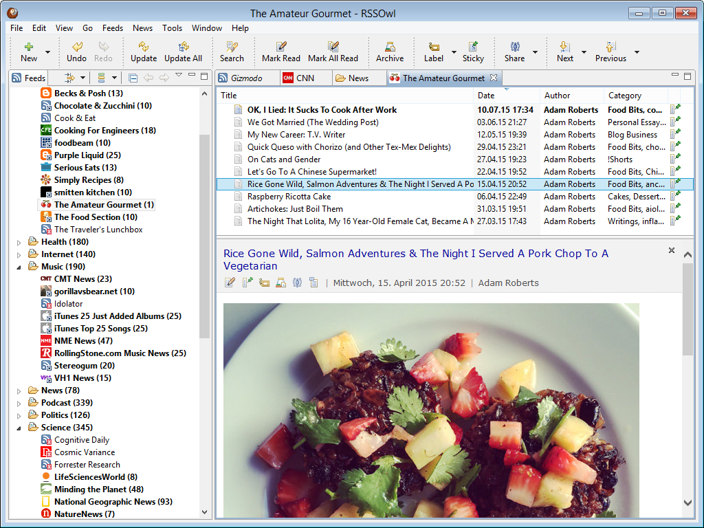 RSSOwl is a useful program for reading RSS feeds made in Java. This reader provides many features, such as: collecting, organizing information from RSS feeds, searching, tagging messages, etc. This information collected by the RSS reader can be saved and then viewed off line.