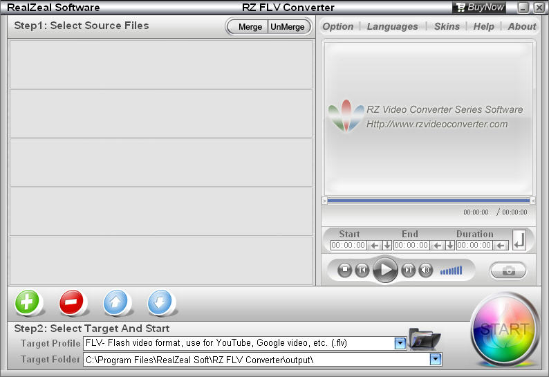 RZ FLV Converter is a program that can convert any video or audio file (including AVI, MP4 (MPEG-4), XviD, DivX, H.264, H.263, MPG (MPEG-1, MPEG-2), MKV, WMV, MOV , RM, RMVB, 3GP, ASF, OGG, VOB, AC3, AAC, MP3, AMR, WAV, WMA, etc), FLV (Youtube video file, Google Video Files).