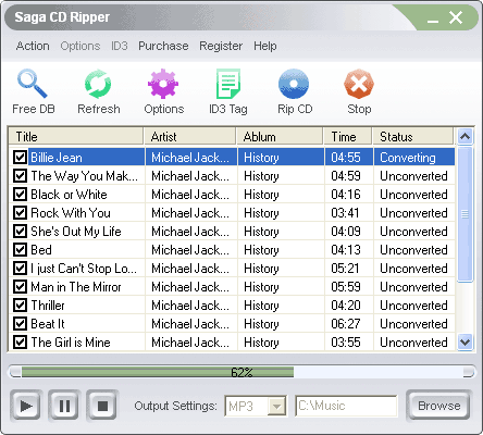 Saga CD Ripper allows you to create digital copies from audio CDs to MP3, WMA, WAV and OGG files with excellent quality.