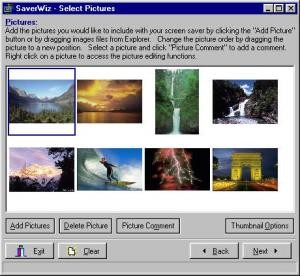 SaverWiz is a simple tool that helps you create a screensaver from your own digital photos or images in no time. Supported graphic formats include TIF, GIF, JPG, BMP, PNG and WMF. Various interesting transition effects can be added to the screensaver.