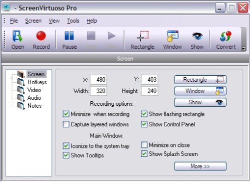 ScreenVirtuoso is an interesting tool that allows you to record activities on your desktop and save them as videos in an AVI file. We can also convert this AVI file to MPEG 1/2 VCD/ SVCD/ DVD, FLV/SWF, WMV compatible formats. The program supports publishing recorded video to the web in Flash (Pro version).