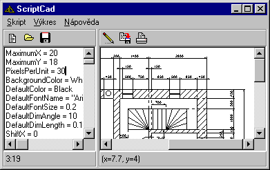 Unlike most other CAD programs, ScriptCad has a slightly different working philosophy. In other CAD programs, the user uses visual drawing design, i.e., clicks on geometric shape pictograms in the menu and then clicks in the drawing area to display the shape. Although this way of working is also supported in ScriptCad, the main capabilities of ScriptCad lie in drawing using commands (hence the name of the program - the drawing is drawn based on a set of commands - called a script).