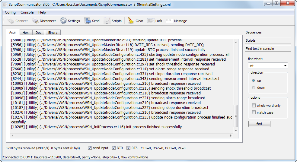 All data is displayed in the console (ascii code, hexadecimal, decimal, binary, combined - with color customization) with logging to HTML, text or custom log.