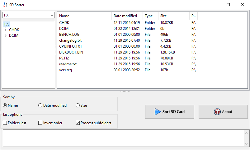 SD Sorter is a useful utility that does not need to be installed and helps to organize files in a directory on an SD card or disk. You can easily sort and manage file names or sizes with this application, just load the contents of the SD card, choose a sort and then have the files renamed according to that sort. The app is probably most useful for organizing music, because using it allows you to sort music by number, and this will then make it easier to select and play music in any mp3 player, if you have a remote control, then just select the number on the remote to play that particular song.