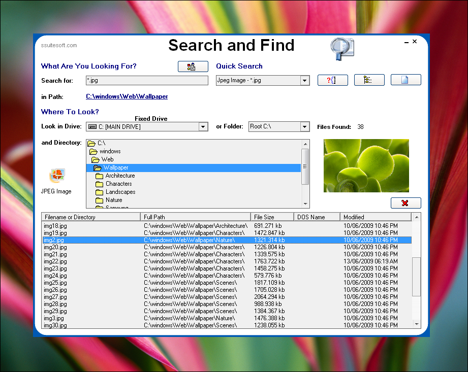 Search and Find is a tool that makes it easy to search for files on your computer. It searches for files on disk by several input parameters such as full or partial file name, format, specific disk drive and directory, etc. After the search, the tool displays the corresponding results in the form of a clear table.