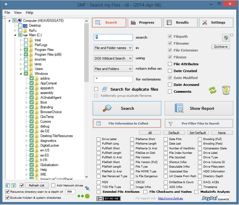 Search my Files is an application designed to provide the most efficient search of files and directories by combining advanced features with direct access to provide the best search results. With the program's well-organized features, you can quickly select the location on your computer that the program will search, and various filters can also be applied, such as file path, name, extension, size, attributes, comments, or the date the files were created or modified.