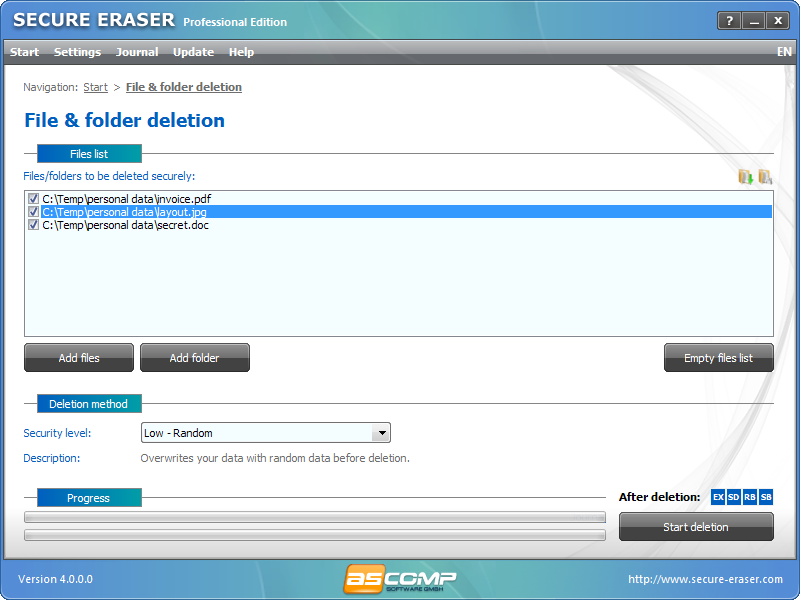 Secure Eraser can irreversibly delete selected files and clean the disk. It offers an easy-to-use interface. It supports five standards for erasing. The program can be embedded in the context menu, giving direct and quick access for unproblematic data removal.