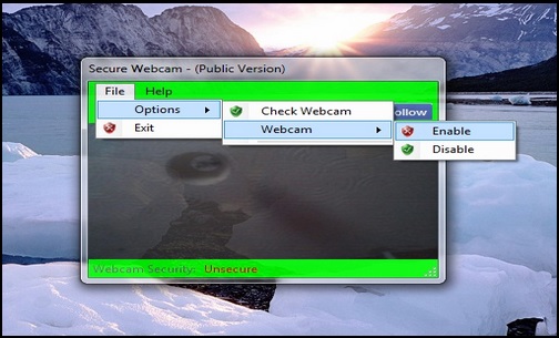 Secure Webcam is a helper to control and monitor webcam activity. It prevents users from falling victim to cybercrime. It allows you to see if the webcam is active and can perform a temporary disablement.