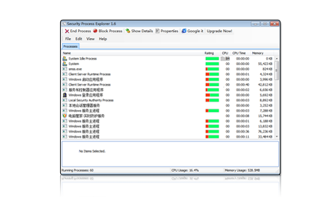 Security Process Explorer also provides CPU monitoring and graphical display of memory usage for each process, detailed process information, process start and stop, priority setting, cancellation of unnecessary processes,...