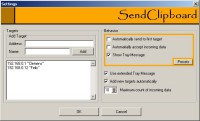 SendClipboard uses the 20193 network port to transfer data between computers. Once the software is installed and running on both computers, a window opens where you can select what you want to share.