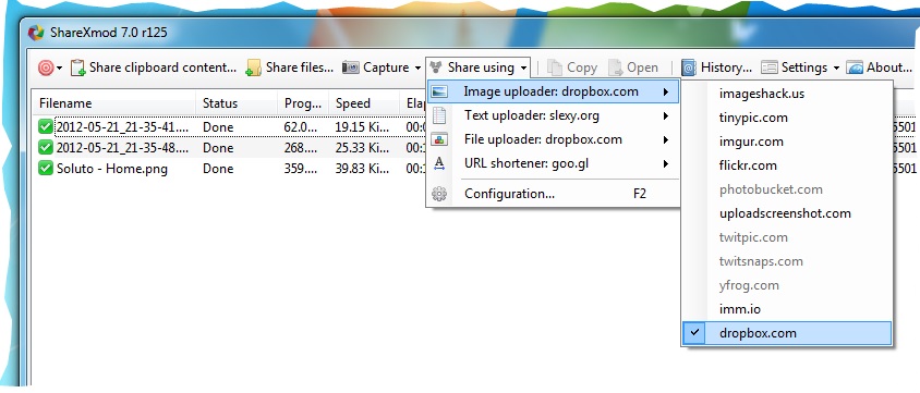 ShareXmod is a program that allows you to capture screenshots and save them to your clipboard, hard drive or upload them to over 20 different remote locations. ShareXmod can capture images with different shapes: rounded rectangle, ellipse, triangle, diamond, polygon and also freehand. It can also upload images, text files and all other different file types. It is capable of capturing images with transparency and shadow. The program also supports drag n drop and integration into Windows Explorer.