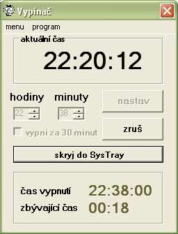 Set the computer shutdown time, select "set" and the program can be minimized to the system tray (next to the clock). One minute before the actual shutdown, the program warns you by flashing the icon in the system tray and notifying you with an information bubble.