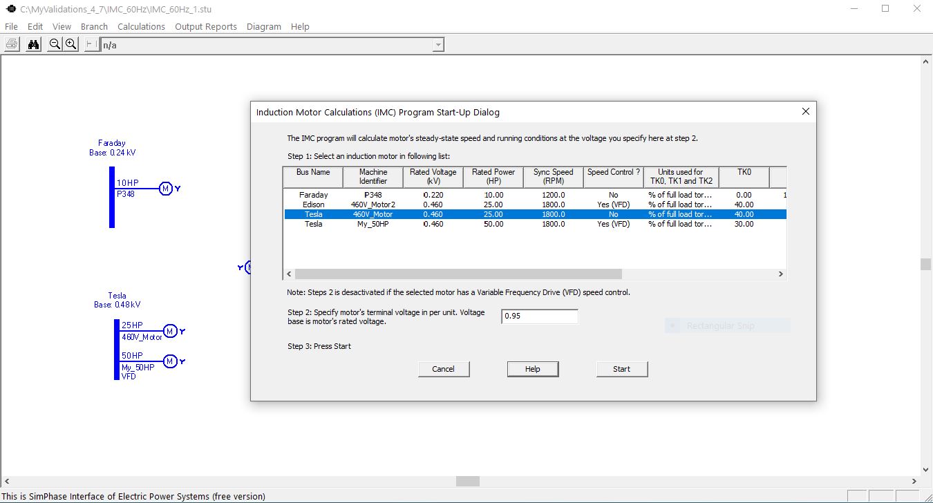 SimPhase is a program that can calculate with high accuracy the steady state conditions of a three-phase induction motor for any combination of mechanical load and terminal voltage. The software suite includes two programs, SimPhase Graphical Interface and SimPhase Induction Motor Calculations (ICM) Program. The program can work with 50 Hz and 60 Hz three-phase induction motors. The projects are saved with a .stu extension and require the creation of a three-phase bus. To generate it, right click to select diagram - create bus.
