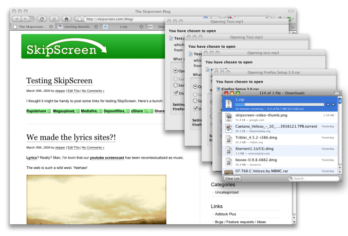 This Firefox extension allows you to skip wait times on various sites such as RapidShare, Megaupload, Mediafire and zShare.