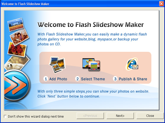 This is a software used to create animated slideshows in the output SWF file. It easily converts your photo collection into Macromedia Flash format (SWF), which you can then easily share on websites. Presentations can be enhanced with background music and special transition effects.