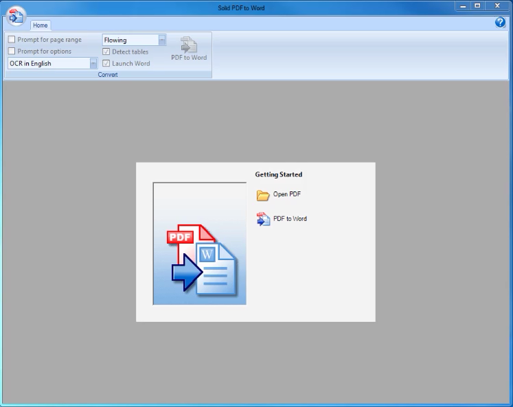 PDF to Word conversion. Convert your PDF files to Microsoft Word documents for easy editing. Solid OCR: 13 languages supported (English, Danish, Finnish, French, Dutch, German, Italian, Norwegian, Polish, Portuguese, Russian, Spanish and Swedish). MS Office OCR: requires Microsoft Office Document Imaging + installed spell checker, including OCR module, for the respective language. Conversion quality. No need to waste hours correcting formatting and reworking the converted document. Header and Footer. You have advanced options for converting or removing the header and footer of your document. Table conversion. Unique conversion of tables with and without borders as table objects, including formatting, into Word documents. Identification of forms. The program can recognize form fields and convert them to easily editable text fields. Conversion of rotated text. You can extract text from a PDF, regardless of its orientation. Detection of hyperlinks. URL hyperlinks are automatically converted from the original PDF file to the new Word document. Batch conversion. Time saving is made possible by the use of batch conversions that can be run from the program's graphical user interface.