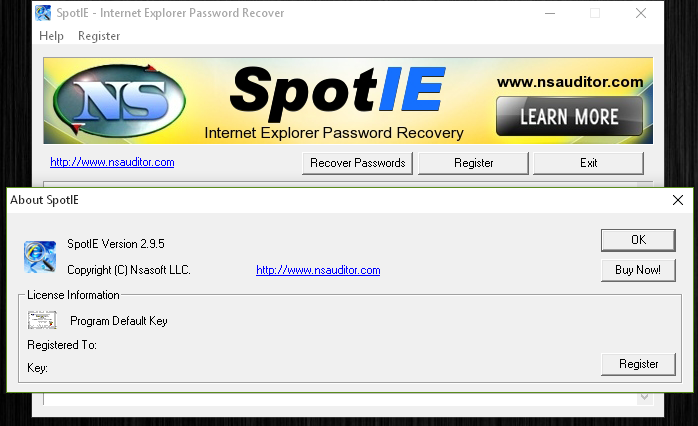 SpotIE is a simple tool to retrieve lost or forgotten passwords on websites that were stored in Internet Explorer.